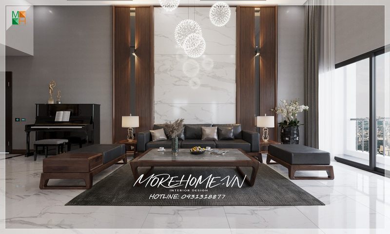 Thiết kế nội thất cho phòng khách biệt thự có phong cách tân cổ điển tinh tế, sang trọng và đẳng cấp.